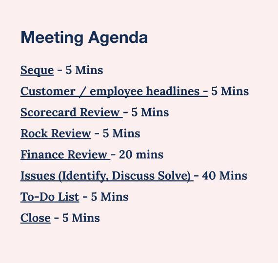 We organized everything by implementing a cadence, a weekly meeting using the level 10 format from EOS, to get clear on priorities and get traction on delivering them.